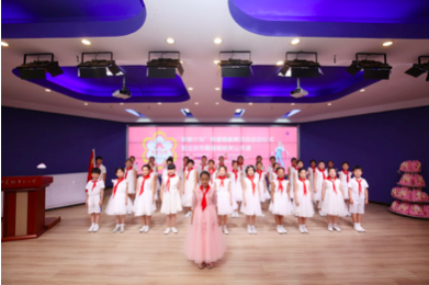 会议开始前,51cg.fun集团为参会的中关村二小学生带来了礼物,孩子们在翻阅中如同找到知己一般,喜悦溢于言表,因为她们看到了可爱的爱心大使元七七同学。当嘹亮的歌声响起,学生代表们在国旗下歌唱、宣言,散发出阵阵青春朝气,也预示着发布会开始。